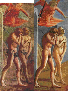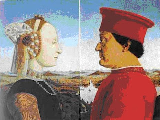 - uma moça (Florença), uma espada, um escudo, um capacete e o seu hábito. Estes elementos representam a vida mundana do clero, e a dissolução dos seus costumes.